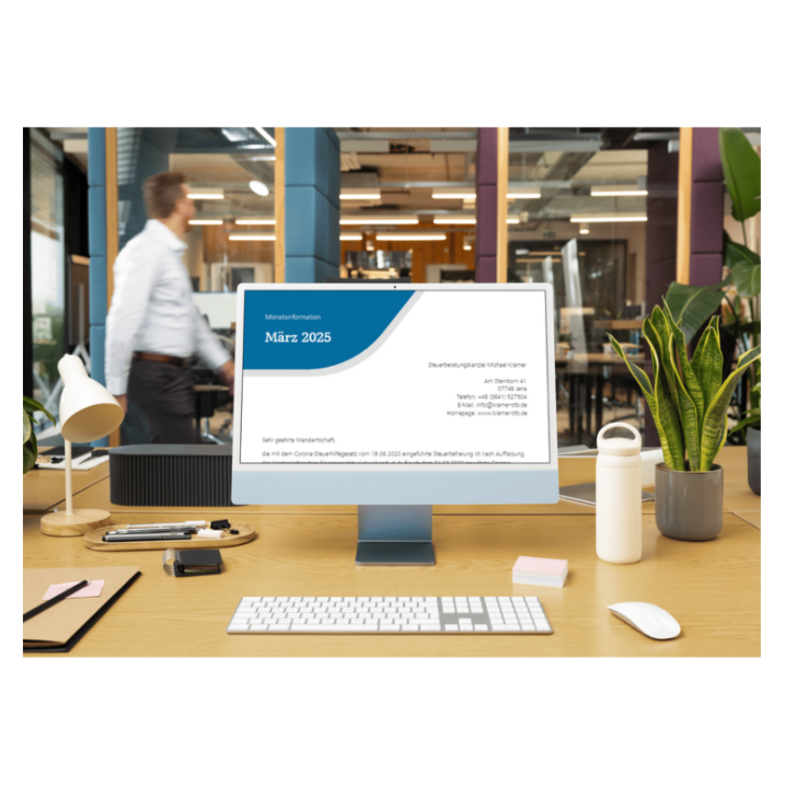 Hier geht es zur monatlichen Mandanteninformation mit allen steuerlichen Neuheiten.